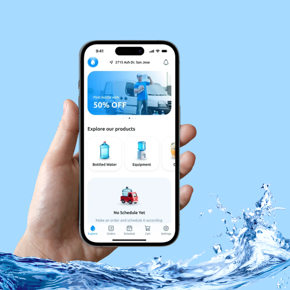 Pobierz aplikację i ciesz się naturalną, górską wodą z dostawą pod drzwi.